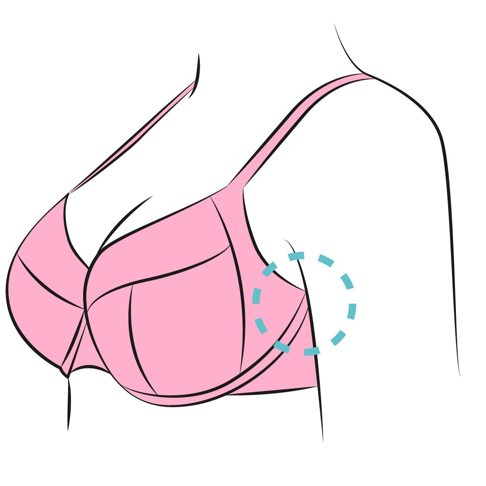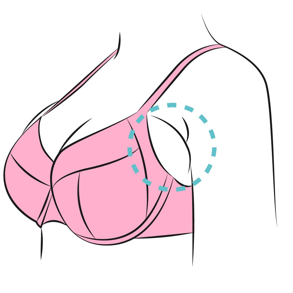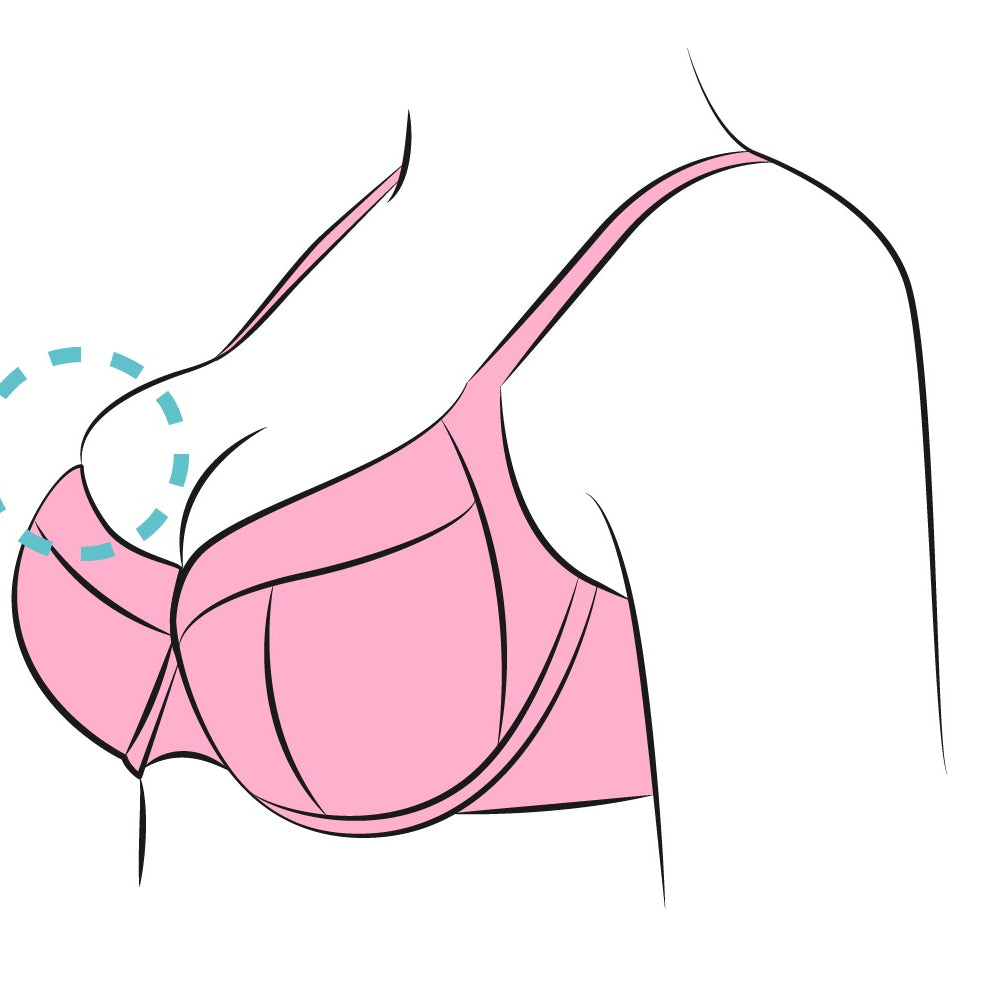 The cups of your bra should sit flush against your breast tissue, giving a nice smooth line at the neck edge with no gaping or bulging, and no overspill at the underarm.