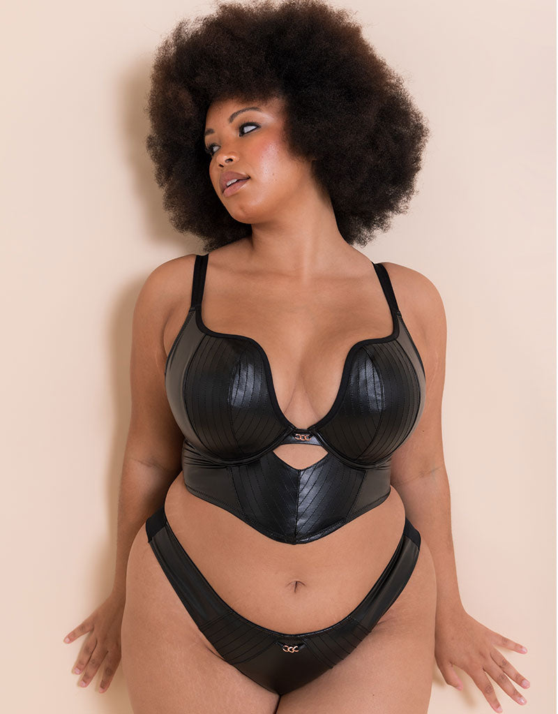 The Scantilly Hell for Pleather Brazilian brief mixes style and comfort with rose gold hardware and pleather detailing as well as offering a comfortable and classic cut for all day wear.